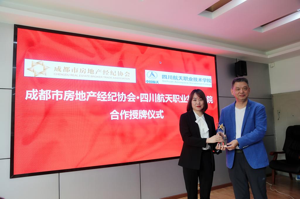 仪式上,马景卫部长先简要介绍了成都市房地产经纪协会的概况,以及房地产从业资格证的考试培训情况,随后举行了 “成都市房地产经纪人培训考试合作点” 授牌仪式,郭花总监向学院颁发了“校企优秀合作院校”奖杯。马部长指出,此次合作是新形势下行业人才培养工作的一次有益尝试,也是对教育链、人才链和产业链的一次有机衔接。依托贵校在职业教育领域的办学优势及人才储备,将行业考培工作前置,可以发挥在校生学习能力强的优势,是对其学业的一种有效补充,有助于提前构建房地产知识结构,培养职业服务意识,与“校企合作共建”模式形成合力,共同提升高素质人才专业服务能力。