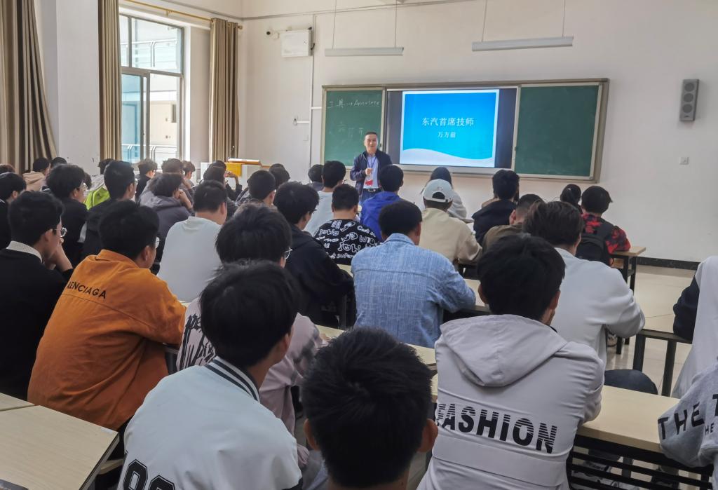 万方前告诉同学们,在校期间首先要有明确的目标,明确自己以后想从事哪方面的工作,这样才能有努力的方向。他还表示在学校期间打好基础和考技能证的重要性。随后,他以东汽几位优秀员工作为案例进行对比,阐述学习、工作和为人处世的基本道理。最后他强调不管学习还是工作坚持才是成功的根本。
