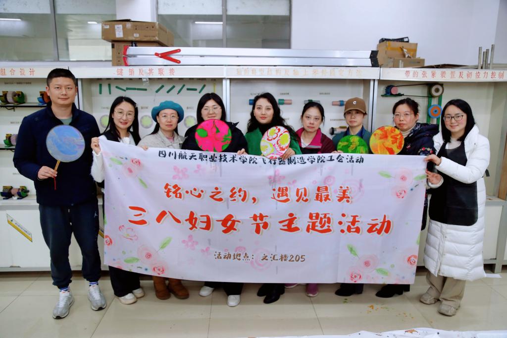 浓情三月天,巾帼绽芳华。在这春意浓浓的三月,时值“三八”妇女节,为丰富学院女教职工的文化生活,展现其风采和良好的精神面貌。2024年3月8日,飞行器制造学院于当天上午十二时,在三星堆校区205教室举办了“铭心之约,遇见最美”三八妇女节主题活动,组织女教师进行传统非遗水拓丝巾和团扇的制作。