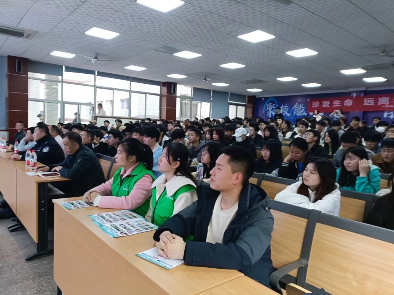 北干道派出所王洋副所长,根据多年的办案经验,结合仿真毒品、宣传手册给同学们开展禁毒讲解,为同学们普及了吸毒、贩毒、制毒、贩卖毒品所承担的法律责任等知识,告诫同学们一定要远离毒品,珍爱生命。