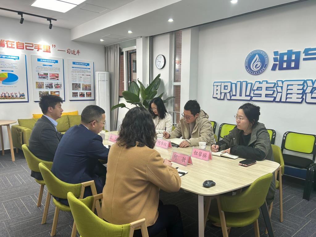 为推动就业工作走深走实,提升学生职业生涯规划能力,近日,人文社科学院党支部副书记何华权、专职辅导员李凯蒂、钮馨瑶一行赴西南石油大学石油与天然气工程学院就大学生生涯咨询工作室建设进行了学习交流。西南石油大学油气与天然气工程学院党委副书记、纪委书记、工作室负责人钱广,学生工作办公室主任张继,2021级石油工程专业辅导员何敏参加交流会。
