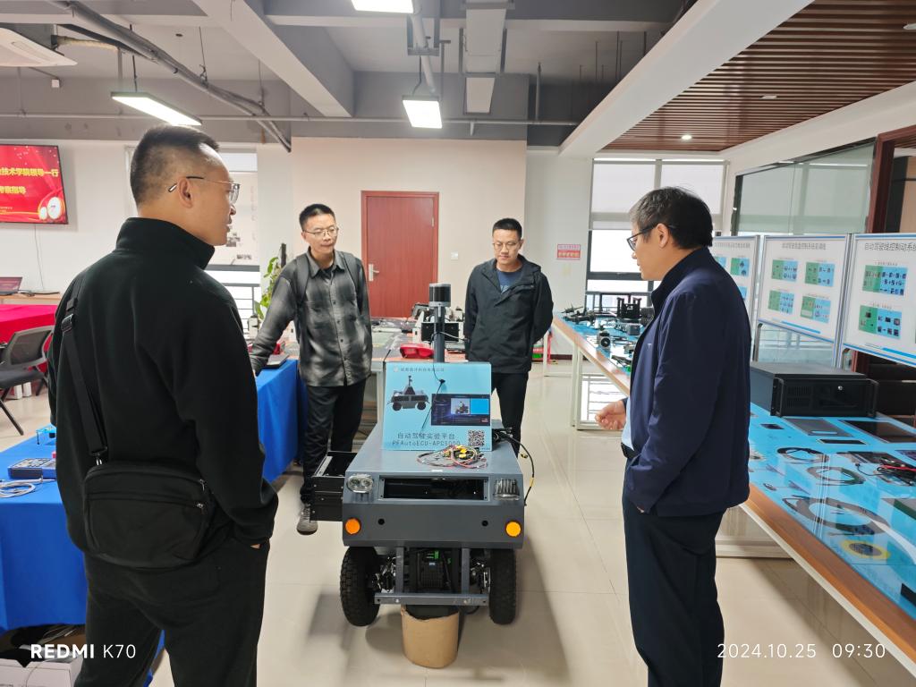 为进一步深化产教融合,提高人才培养质量,拓展毕业生就业岗位,10月25日,车辆工程学院副院长邹翔带领新能源汽车技术专业负责人刘星、智能网联汽车技术专业负责人王渝,到访成都盘沣科技有限公司进行了参观、交流和研讨。此次调研聚焦于新能源汽车技术、智能网联汽车的发展趋势,以及新能源汽车技术专业人才的培养定位。