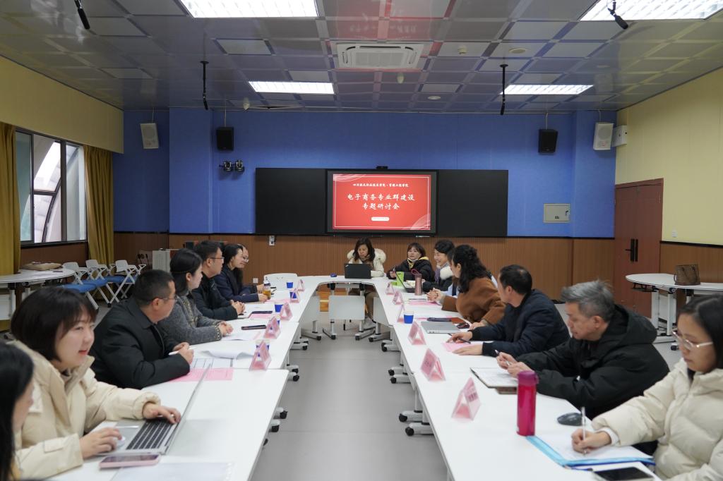 为深入推进产教融合、校企合作,促进教育教学改革,加强电子商务专业群内涵建设,全面提升人才培养质量和电子商务专业群的建设水平,加强校际交流与合作,12月8日下午,管理工程学院在教师发展中心召开了电子商务专业群建设专题研讨会。本次会议荣幸地邀请到了成都职业技术学院副教授,全国技术能手、成都麦文科技有限公司总经理李瑞麒;成都工业职业技术学院电商教研室主任蒲宏;四川职业技术学院物流与供应链学院副院长伍博;重庆商务职业学院电商教研室主任颜颖;中教畅享股份有限公司总经理刘鹏。出席会议的还有我校管理工程学院副院长张欢、副书记王照,以及财经商贸类专业群所有老师,会议由管理工程学院院长李建群主持。