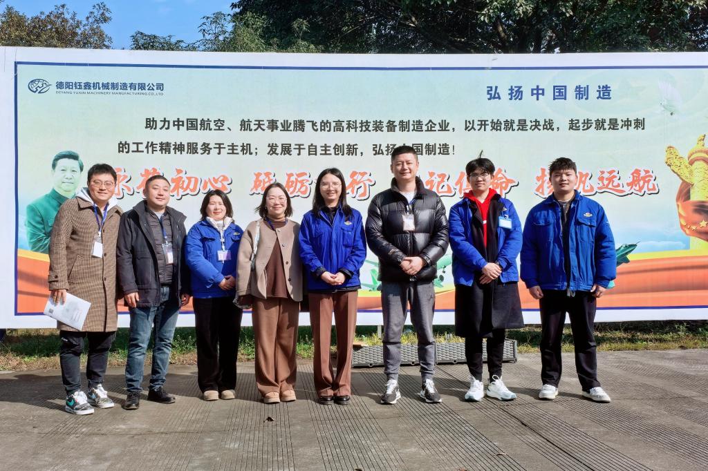 为推进产教融合向纵深发展,2月25日,飞行器制造学院党支部副书记刘琪率队赴德阳钰鑫机械制造有限公司开展访企拓岗专项行动,实地考察学生顶岗实习情况,并与企业共商组建“订单班”相关事项。
