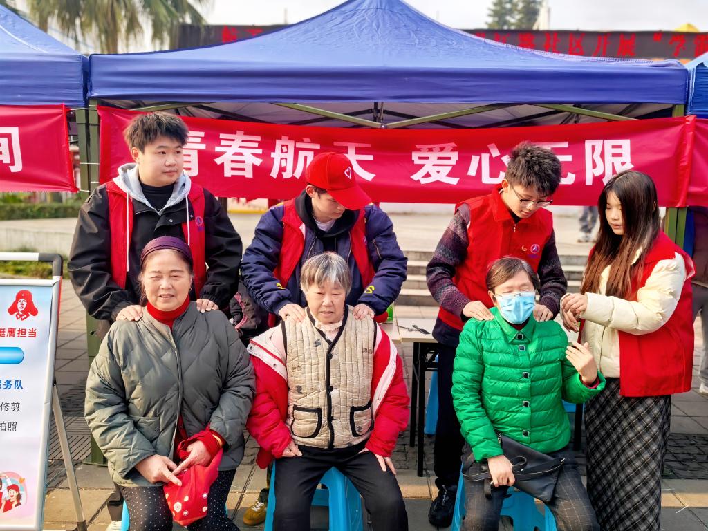 学院志愿者们依托专业技能,精准对接居民需求。学生志愿者为社区老人提供肩颈放松、穴位按压等服务。志愿者们通过实践深化了对老年群体的关怀意识,将课堂知识转化为服务能力。