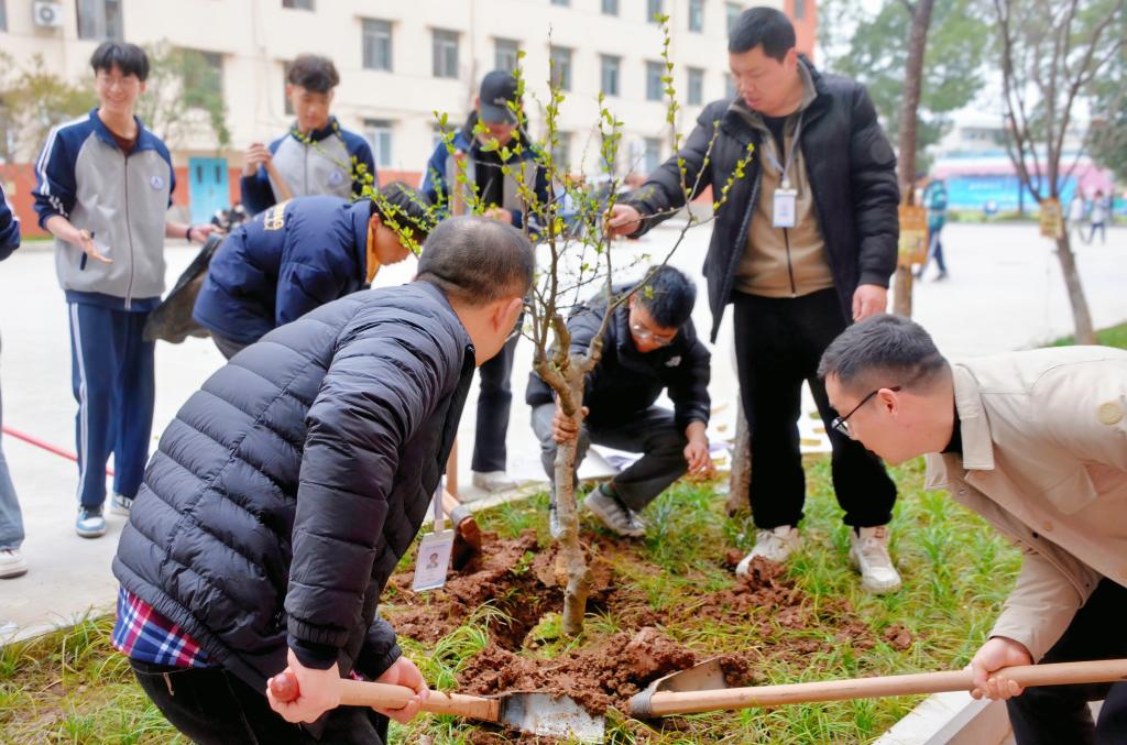 3月12日是我国第47个植树节。当天上午,四川航天技师学院组织开展了以"植绿护绿,共建绿美校园"为主题的植树种花活动。学院领导、党员教师及学生志愿者积极参与。