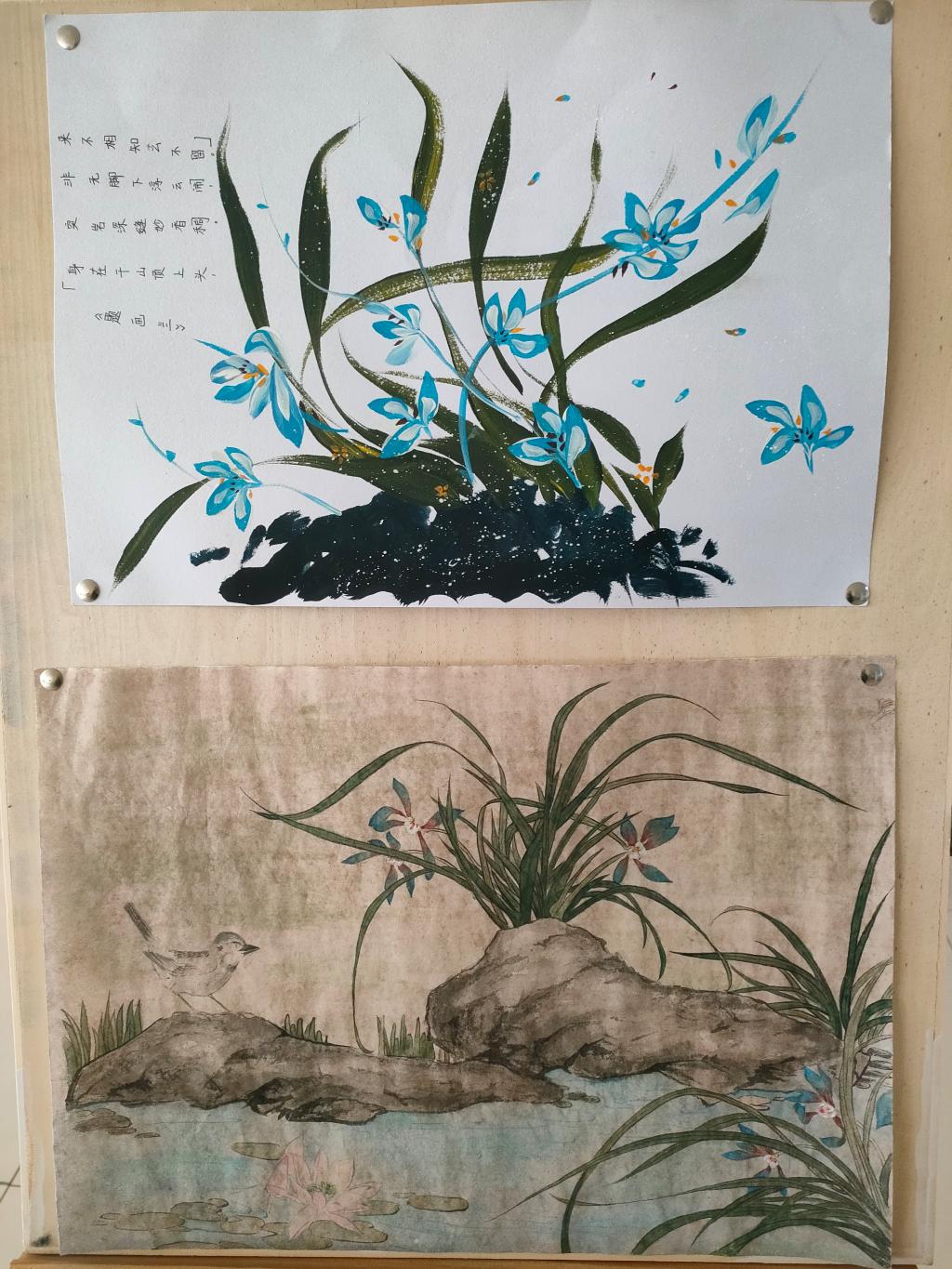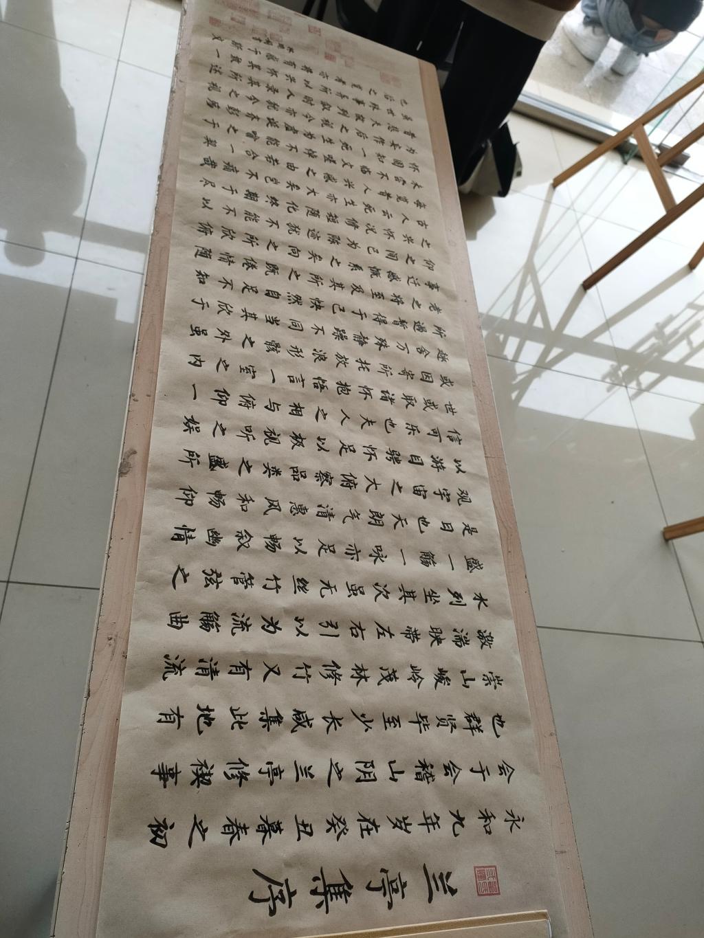 绘画区,兰花娇艳欲滴,仿佛在微风中轻轻晃动。书法区,《兰亭集序》笔锋飘逸,书写者凭借深厚功底,尽显曲水流觞的惬意,带观众仿若置身兰亭雅集。