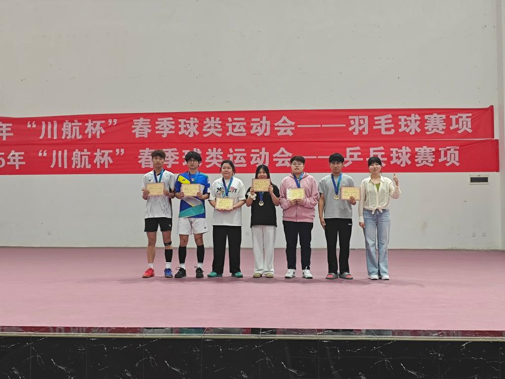 为深入贯彻落实学校“三全育人”重点工作部署,推动校园体育文化建设,增强学生体质,培养团队协作精神,在学校党委领导支持下,校团委于4月份在三星堆校区举办2025年度“川航杯”球类运动会。其中,校团委主办,车辆工程学院团总支承办,智能工程学院团总支、校羽毛球协会协办的“青春羽动,跃梦航天”川航杯羽毛球比赛经过两天激烈角逐,于4月22日圆满落下帷幕。