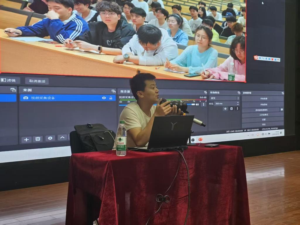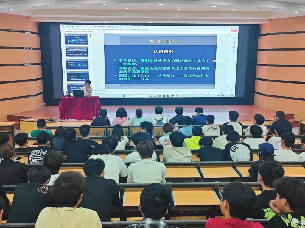 讲座中,杨劲结合多年宣传工作经验,以“理论+案例+实操”模式展开培训。相机基础教学中,他系统讲解摄影三要素原理及场景适配设置,通过设备实操演示不同环境下的参数配置逻辑;会议拍摄模块结合景别,解析会议/活动/课程等高频场景的拍摄方法,并针对往届学生作品常见问题,梳理出十大拍摄注意事项;短视频专题则通过拆解学校抖音爆款视频案例,重点讲授黄金3秒开场设计、热门BGM适配技巧,强调运用账号平台的数据,及时对内容进行迭代优化。