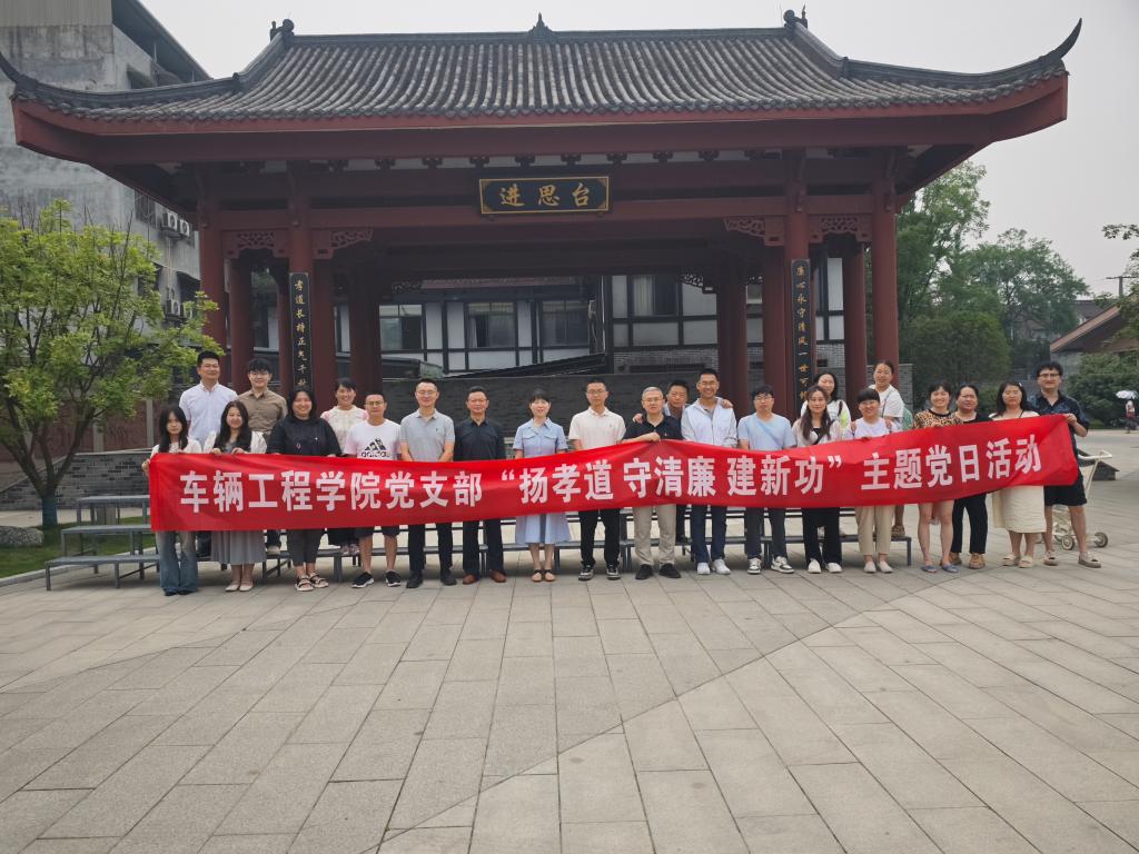 为深入学习贯彻党的二十大精神,深化廉洁教育内涵,5月18日,车辆工程学院党支部组织全体党员赴德阳孝源里·四川省廉洁文化基地开展“扬孝道 守清廉 建新功”主题党日活动。活动通过实地参观、专题学习、交流研讨等形式,进一步强化党员党性修养,厚植家国情怀,筑牢廉洁防线,激励全体人员立足岗位为学校高质量发展贡献力量。