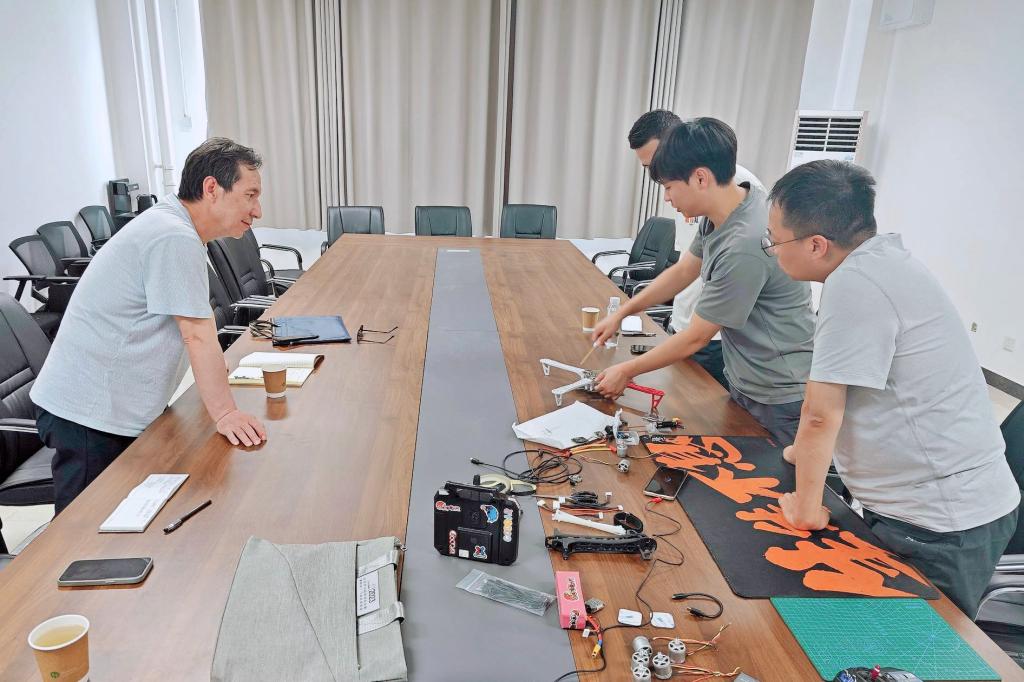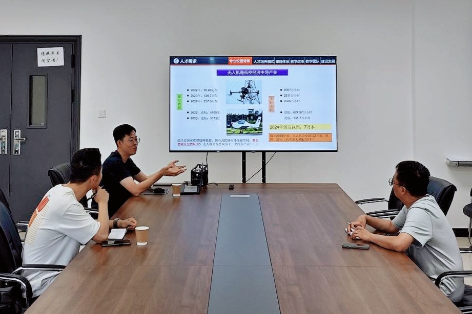6月16日上午,来自天水职业技术学校的貟鹏、顾庆桥、白康宁三位无人机专业教师到我校跟岗学习。学校教务处处长李涛、飞行器制造学院副院长罗意、专任教师刘涛热情接待三位远道而来的客人。双方在三星堆校区知行楼E315会议室深入交流并拟定了本次跟岗学习的学习计划,开启了为期四天紧凑的跟岗学习之旅。