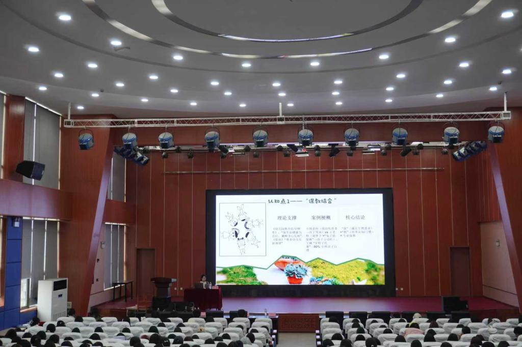讲座主题为《从“学前新生”到“准幼师”——园所视角下学前教育专业认知指南》,周园长结合自己多年工作经验,从幼教工作者应具备的核心能力切入,指出成为一名合格的幼教工作者需要具备保教结合、观察孩子、沟通能力等核心素养。她通过生动的教育案例,让同学们深刻理解到,教育不是机械地传授知识,而是用心去倾听、用爱去呵护、用专业去引导。