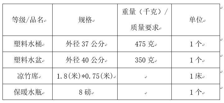为做好今年新生入学的各项准备工作,学院决定采购6000套2020级新生日用品(品名、规格、质量要求见下表),有意参与我校2020级新生日用品的供应商请于2020年6月8日前(含8日)将样品和资质证书、报价单(资质证书、报价单合并密封一式两份,并在封面上注明联系人及联系电话)交学院(龙泉校区)党办。届时我校将通过现场议价,确定供应商。议价时间另行通知。
