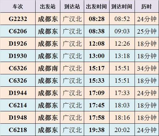 成都至广汉的车次: