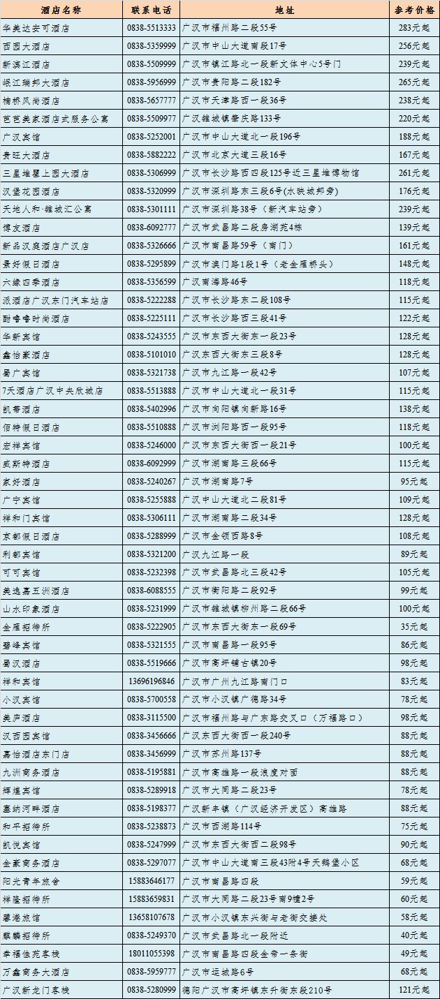 广汉市2018年3月部分宾馆信息