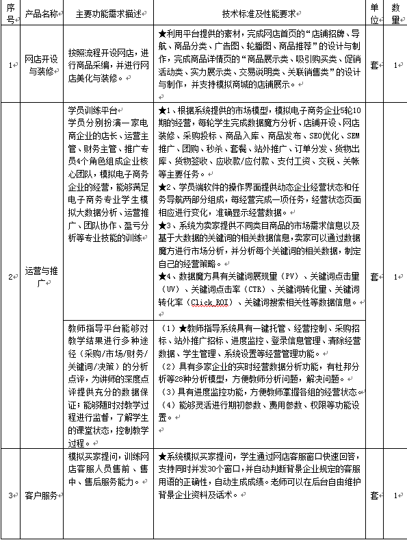附件:物流信息系统(电子商务模块)综合实训系统技术参数