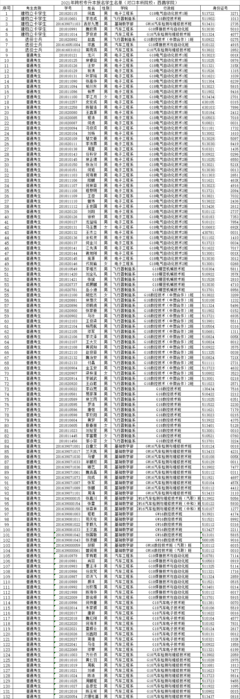 经报名,各系部按照专升本规定严格审核推荐,杨永红等606名同学具有四川轻化工大学专升本报名资格,何鑫等132名同学具有西昌学院专升本报名资格。根据《关于2021年普通高等学校选拔优秀专科生进入本科阶段学习的通知》(川教函[2021]43号)有关规定,现将2021年专升本考生名单予以公示(见附件),请全院师生予以监督。