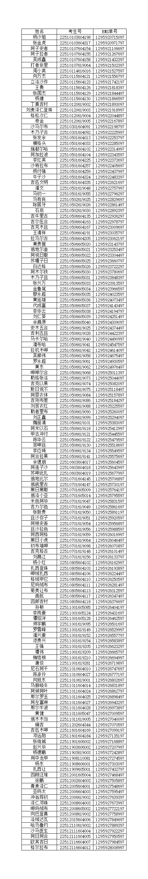 我院2022年“9+3”高职单招录取工作已经结束,录取通知书(名单附后)将于2022年6月9日通过中国邮政EMS发出,考生可凭EMS单号到邮局查询。请于2022年8月28、29日到我院三星堆校区报到,报到地址:四川省广汉市航天大道155号。考生有任何问题请拨打电话:028-84809675、84809638、84809788。