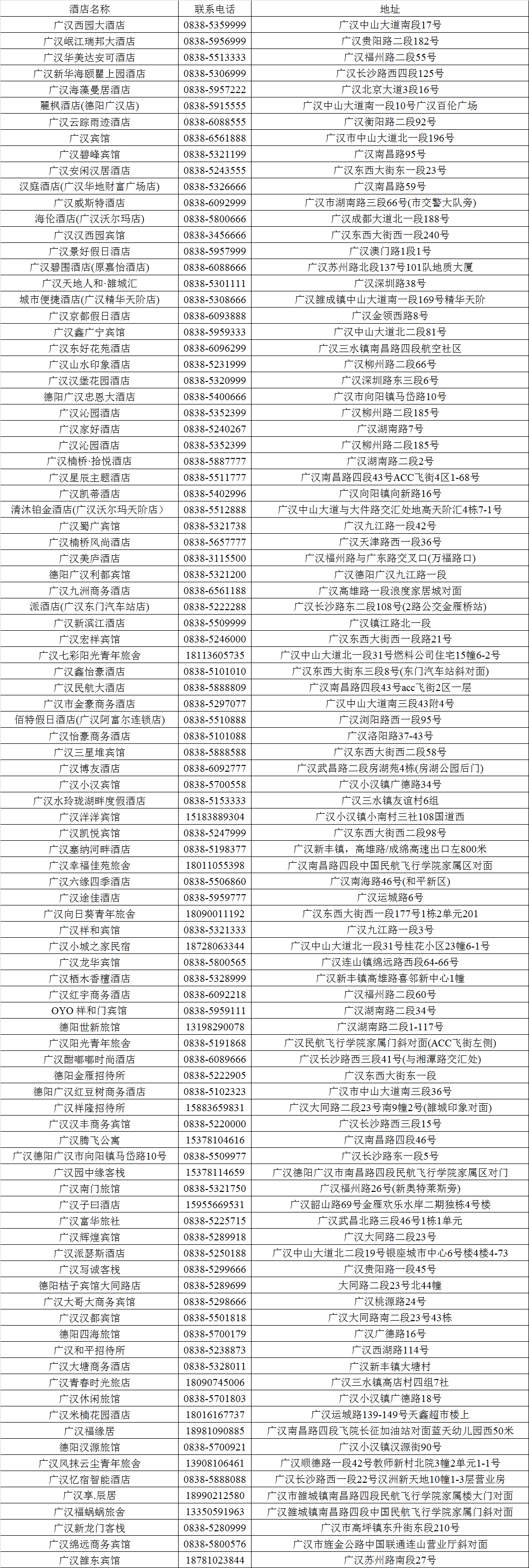 广汉市部分酒店信息如下: