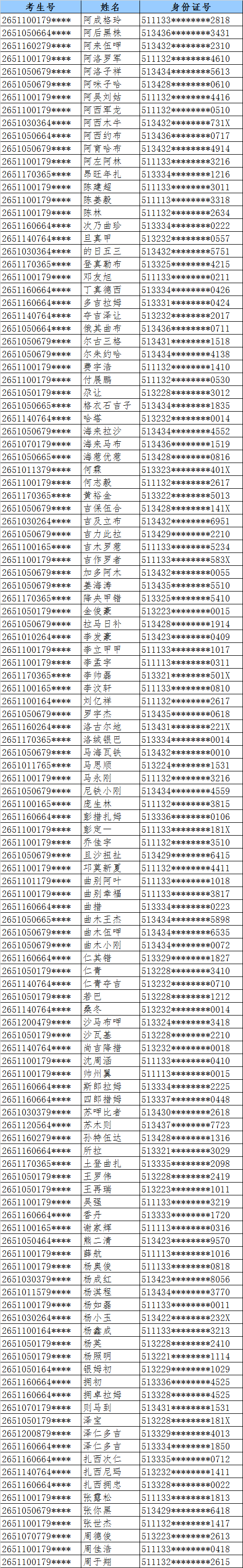 现公示学生名单如下(按姓名排序):