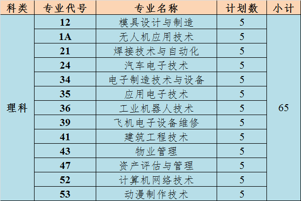 五、补录招生专业及计划(以省教育考试院公布为准)