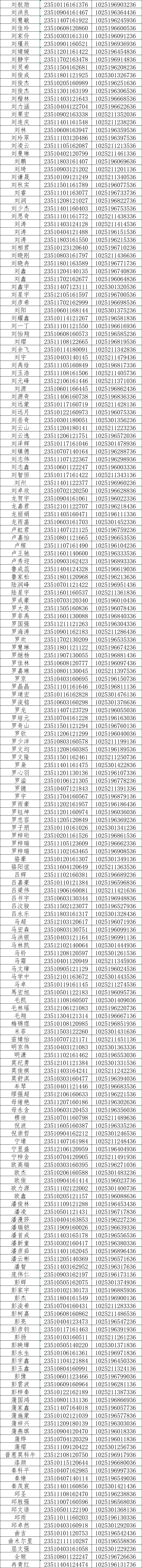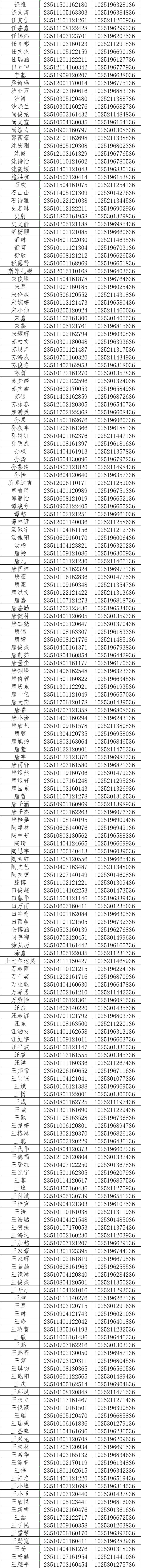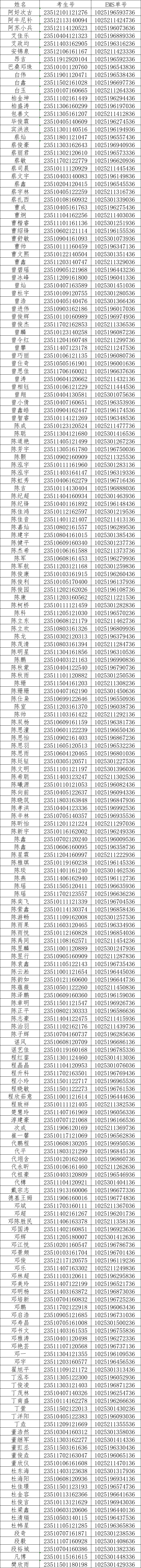 我校2023年在川普通专科录取工作已经结束,现将录取名单和EMS邮寄单号公布如下(按姓氏拼音排序),通知书将于8月20日左右通过邮政EMS寄出(由于邮局需要清点寄送,预计在8月23日左右可通过单号查询到物流信息),录取新生请于8月28日至29日到学校三星堆校区(广汉市航天大道155号)报到入学。有任何疑问请拨打学院招生处电话:028-84809675、84809638、84809788。