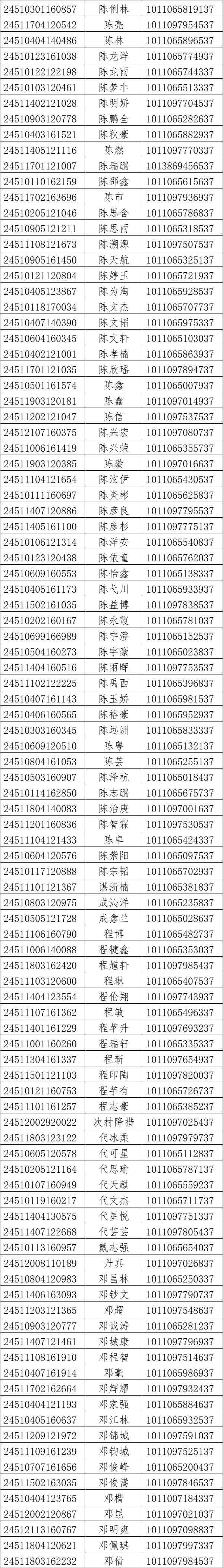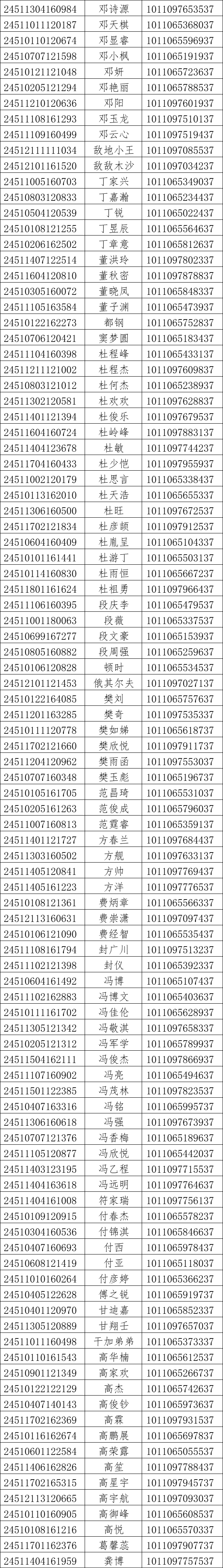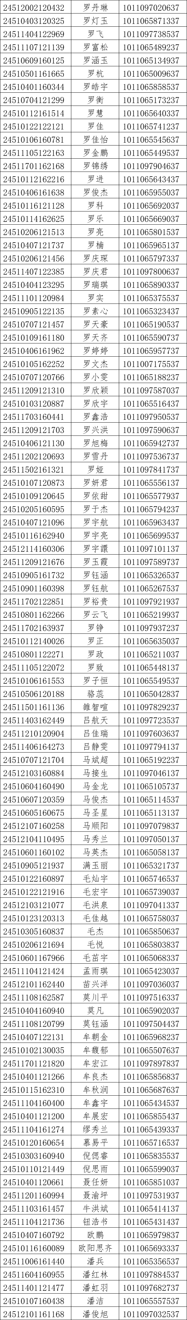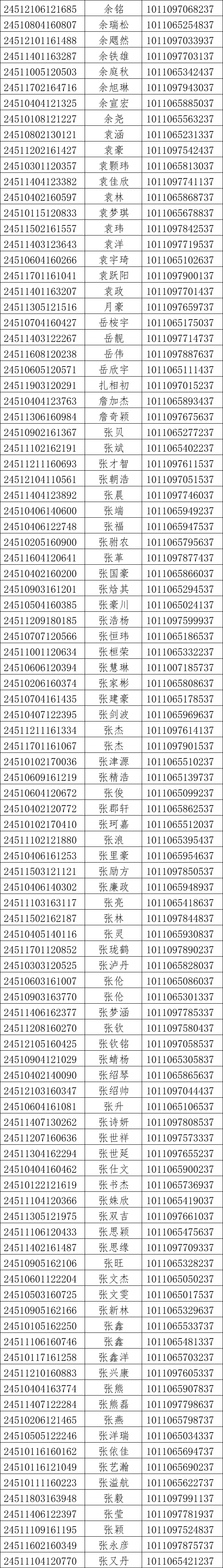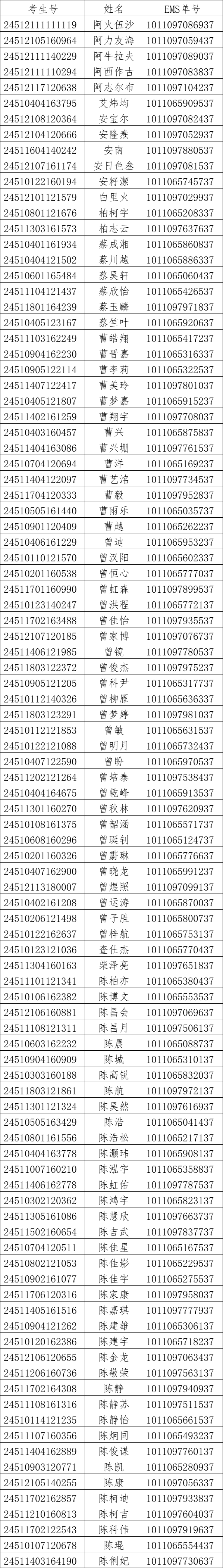 我校2024年对口高考录取工作已经结束。现将录取名单和EMS单号公布如下(按姓氏拼音排序),通知书于8月21日通过邮政EMS寄出。录取新生请于8月28日至29日到学校三星堆校区(四川省德阳市广汉市航天大道155号)报到入学。有任何疑问请拨打学校招生处电话:028-84809675、84809638、84809788。