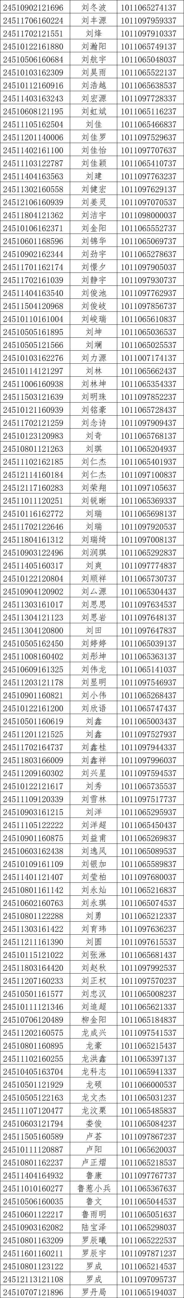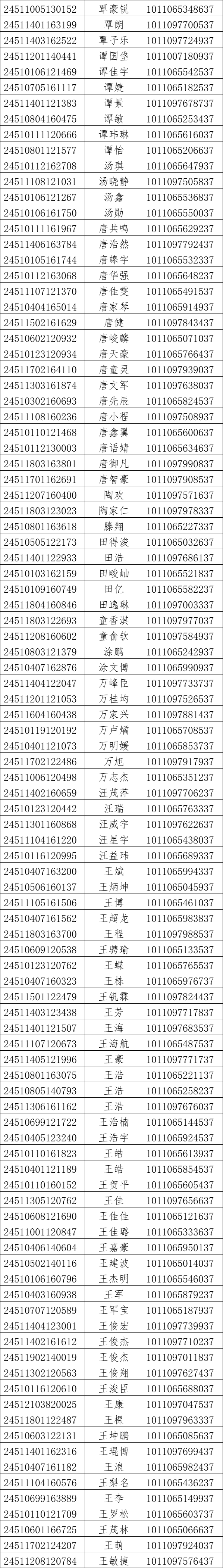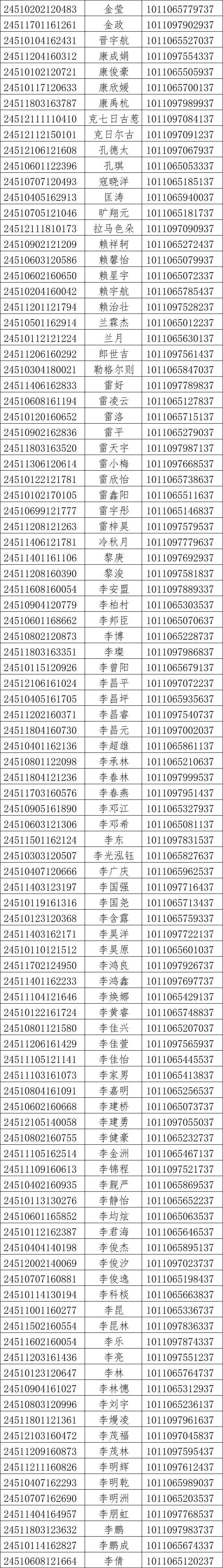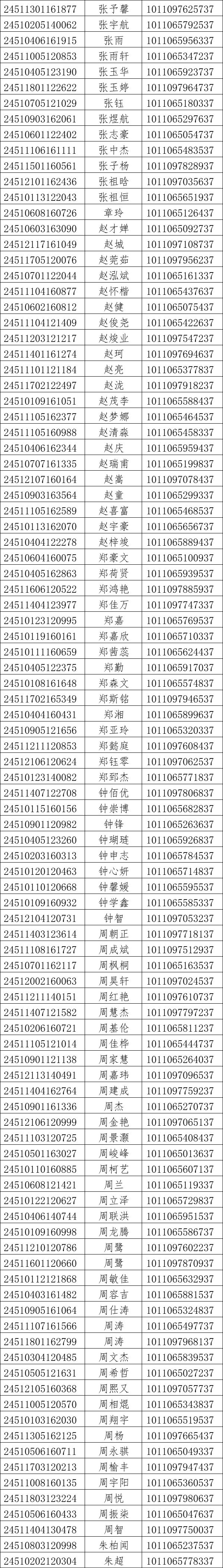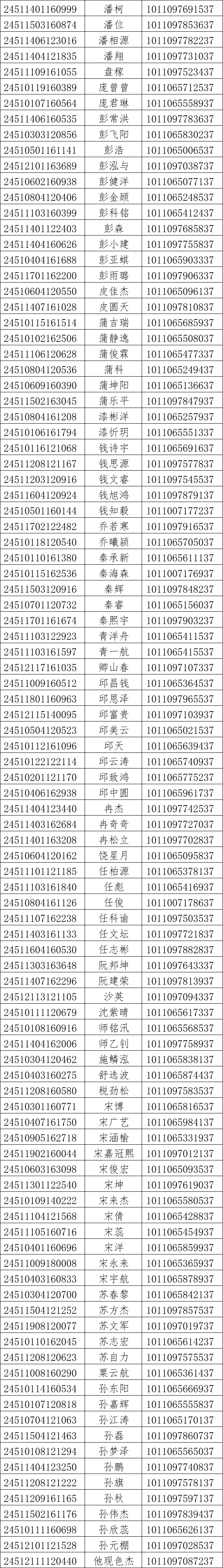我校2024年对口高考录取工作已经结束。现将录取名单和EMS单号公布如下(按姓氏拼音排序),通知书于8月21日通过邮政EMS寄出。录取新生请于8月28日至29日到学校三星堆校区(四川省德阳市广汉市航天大道155号)报到入学。有任何疑问请拨打学校招生处电话:028-84809675、84809638、84809788。