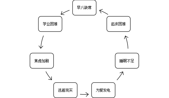 在开学之初物业班即定下学习监督机制,如:在早课出门前宿舍同学应相互提醒,在上课前5分钟纪律委员应点名并联系未到的学生,技能考试之前以小组的形式组队练习。但随着一个学期过去,班级学习监督机制失效,导致正向支持逐渐减弱,班级同学渐渐开始懈怠。在日常学习生活中,追星话题占比日渐上升。追星打榜和看物料熬夜而引发早八缺席现象频发,以宿舍为单位的缺课状况尤其明显。其中220宿舍无人承担提醒上课的监督职责,也较少参与班级学习活动。