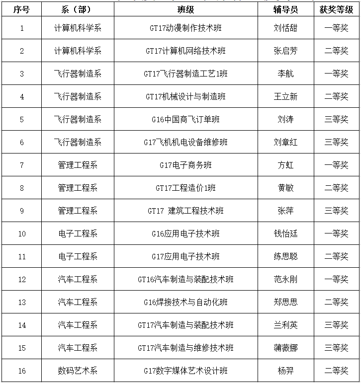 2017-2018学年度先进班集体名单
