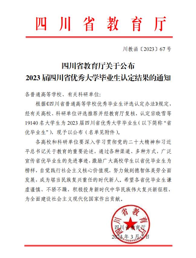 下一篇:四川航天技师学院关于2023届校级优秀毕业生评选结果公示