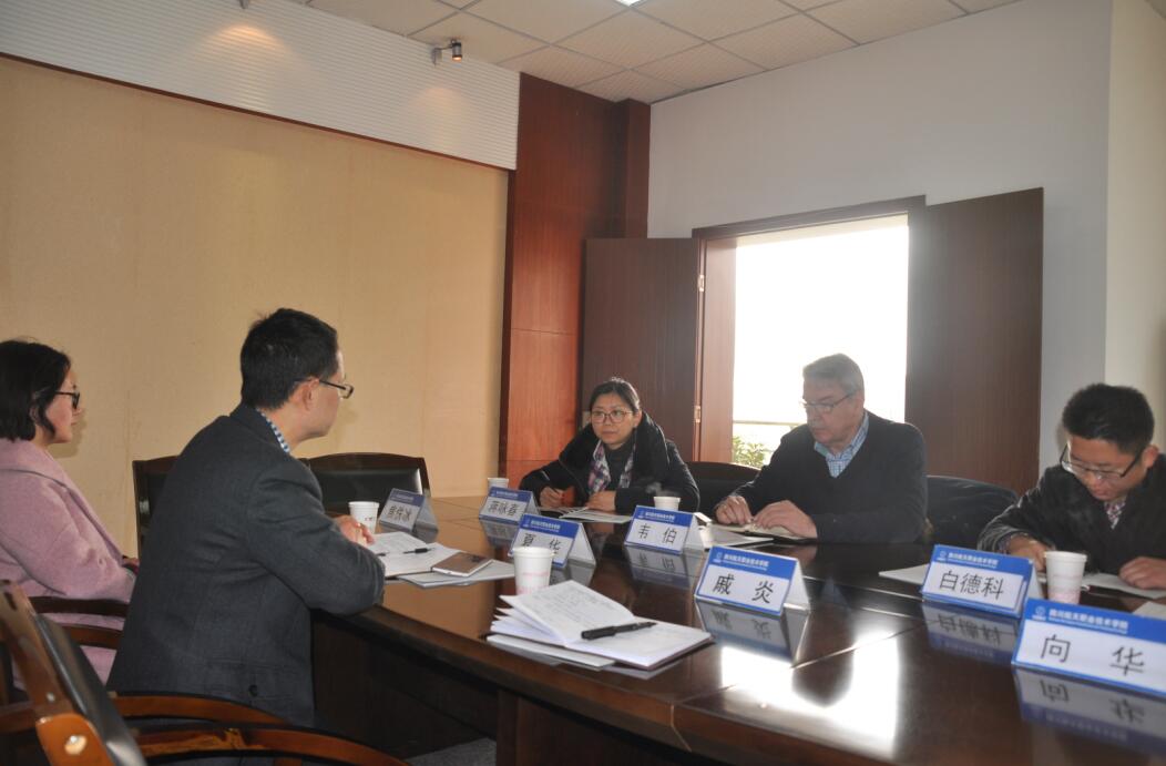3 月1日, 德国科隆大学博士韦伯及德阳市高新区管委会一行到我院广汉校区进行了参观交流,我院副院长夏华热情接待了到访的韦伯博士一行,并经行了友好的沟通交流。 在这次行程中,韦伯博士一行参观了学院校园,了解了我院校史, 以及以学生学习, 就业及发展为中心的办学情况。韦伯博士作为德阳市高新区的国际顾问,充分赞扬跟肯定了我院的办学质量,及未来的发展前景。并表达了希望与我院进行优势资源对接,积极寻求合作的意向。