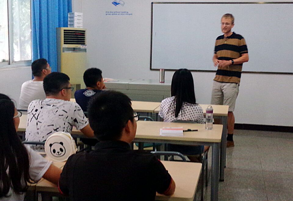 2015年8月30日上午,学院新聘实习外教Gruffydd Pryce到达学院广汉校区。学院国际合作部杨秦副部长代表学院对外籍老师Gruffydd致意欢迎,并表达了对新学期外教在与专职教师团结合作,积极参与专业建设,指导学生课程实践活动,拓展学生文化视野,提高其语言应用能力方面给予的深切希望。在带外教参观校区后,国际合作部向华老师向外教介绍了本学期的总体工作安排,并对课程说课、教案准备和教学志填写等工作提出具体要求。就如何激发学生的学习自主性,如何在课堂进行有效的教学和管理,进行了热烈有趣的谈讨。