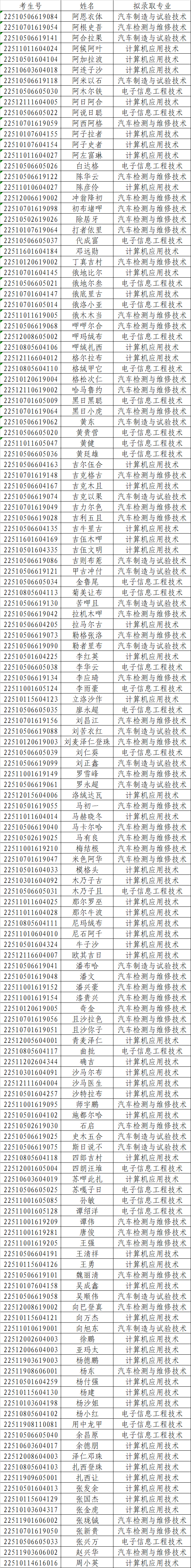 拟录取名单如下(按姓氏拼音排序):