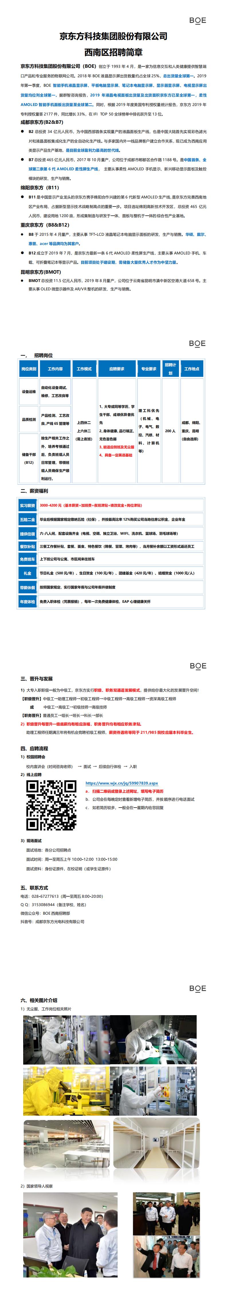 京东方科技集团股份有限公司西南区招聘简章