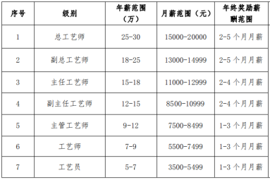 2、工艺技术人员薪酬实行带宽薪酬: