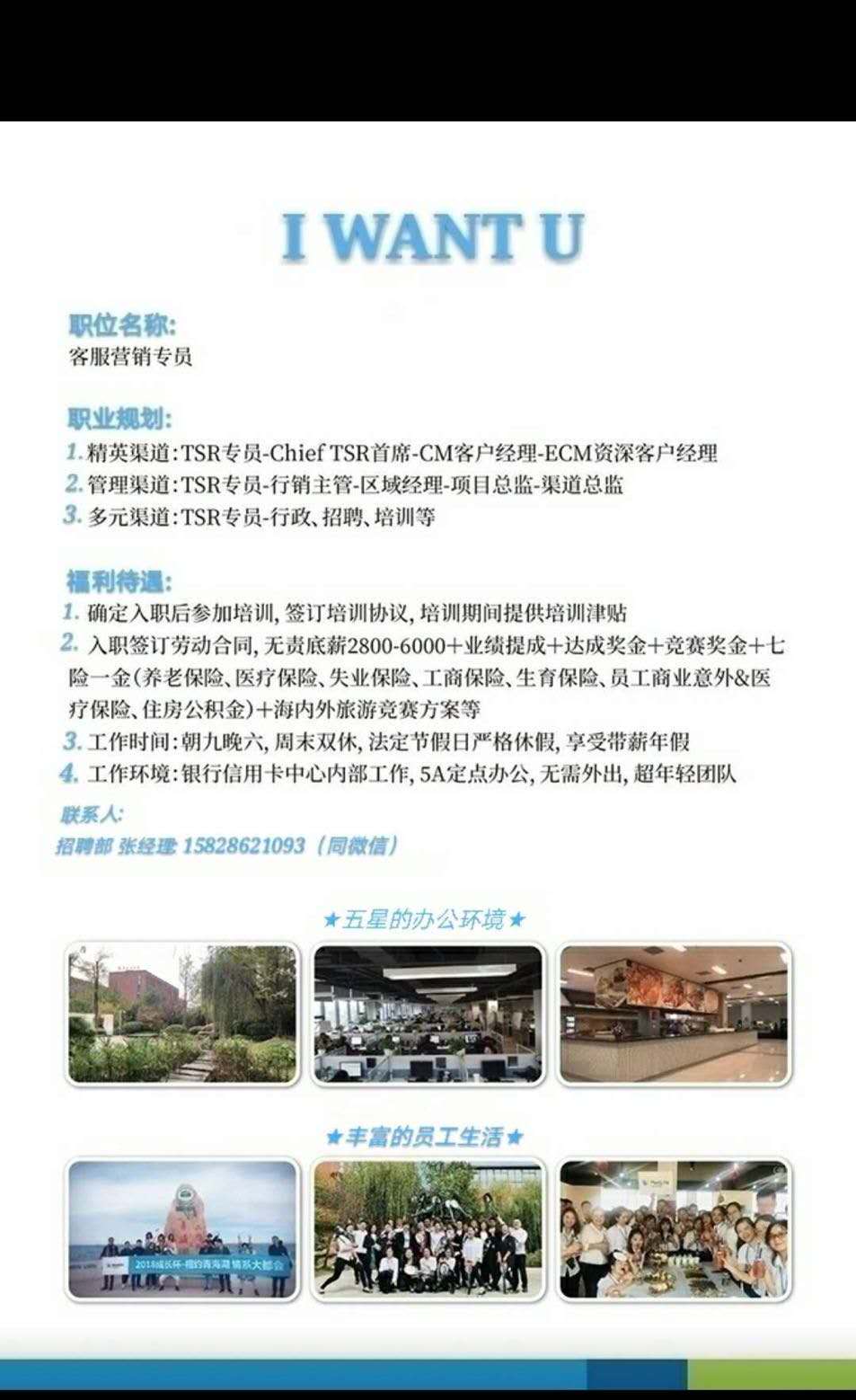 4.工作环境:银行信用卡中心内部工作,5A定点办公,无需外出,超年轻团队。