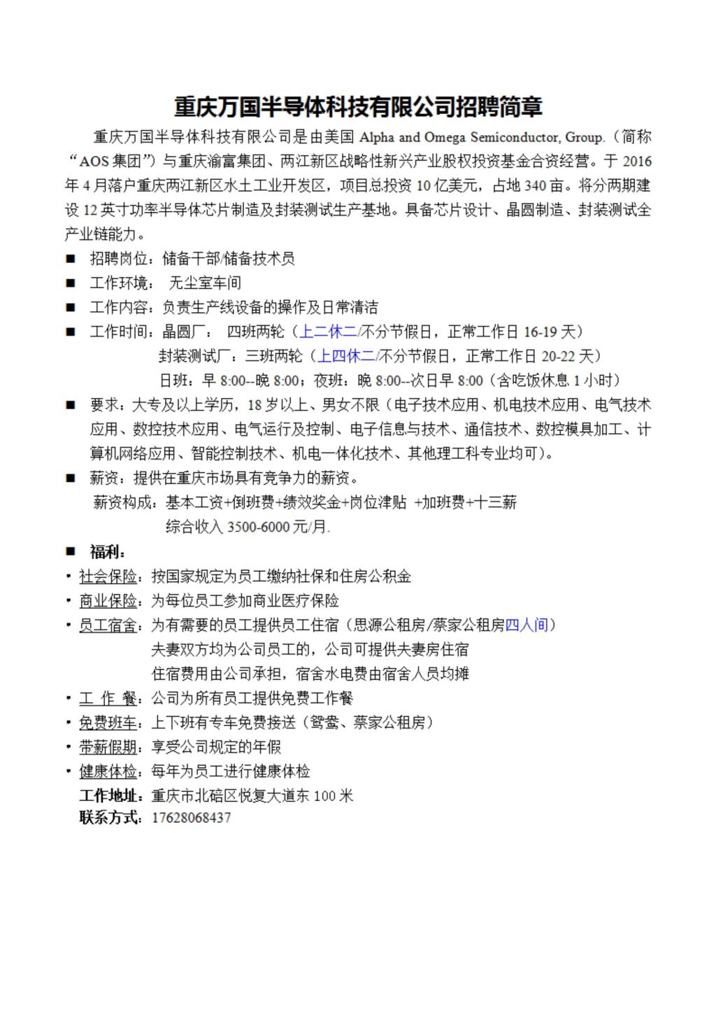 重庆万国半导体科技有限公司