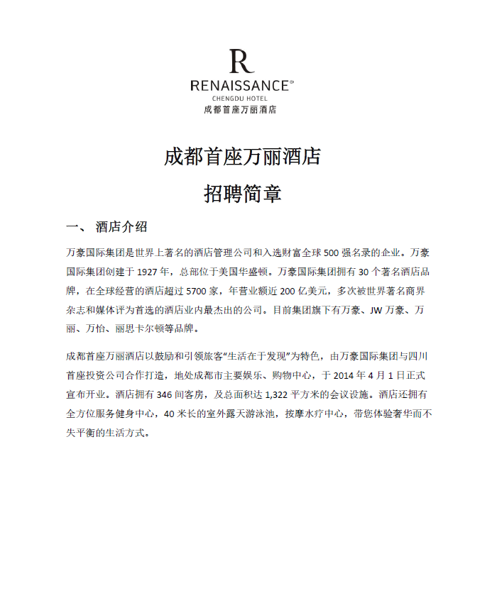 四川首座酒店管理有限公司首座万丽酒店分公司