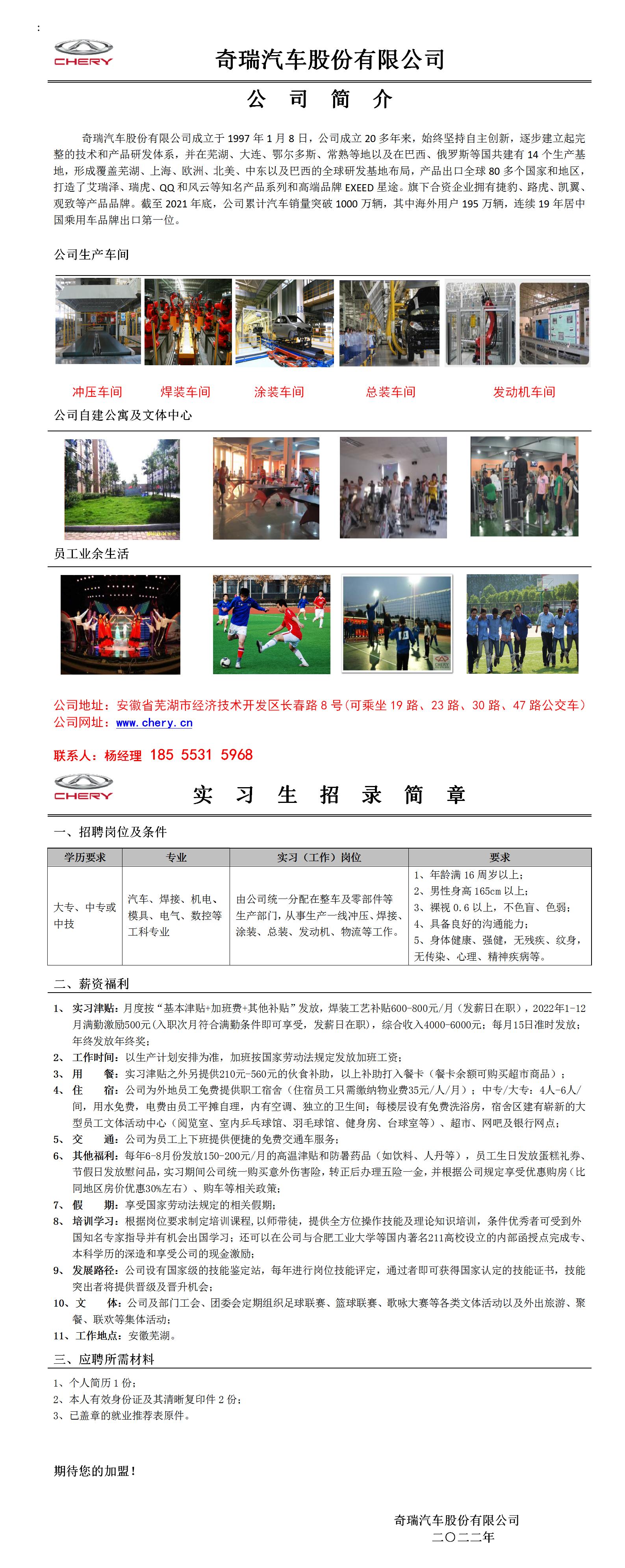奇瑞汽车招聘简章