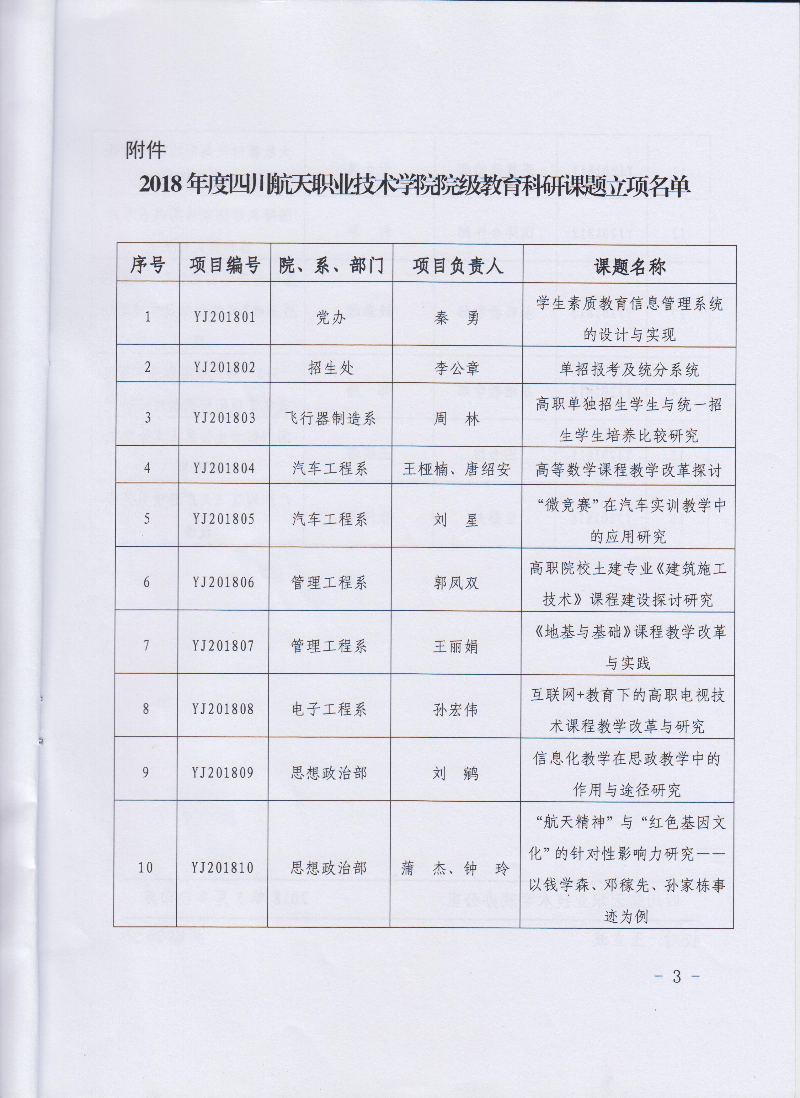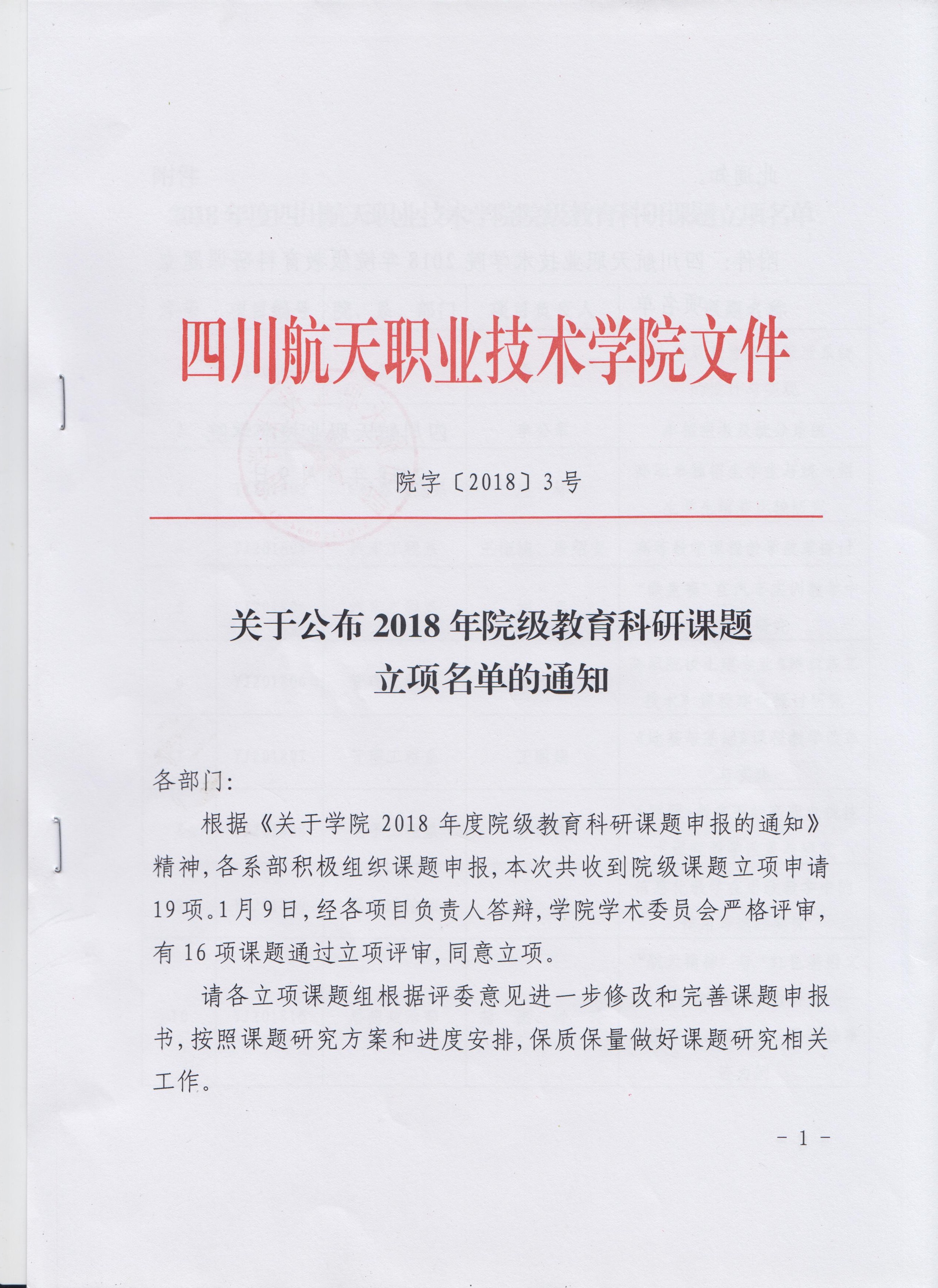 关于公布2018年院级教育科研课题立项名单的通知