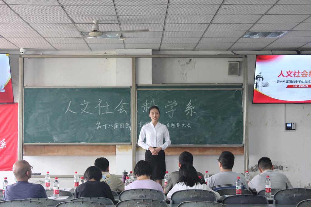 为进一步促进我系团总支学生会干部干部队伍的发展壮大,给学生搭建一个展现自我,实践自我的平台,2021年9月6日下午15点整,十大网投平台排名人文社会科学系在明志楼404教室召开了第十八届团总支学生会换届选举会议。出席此次大会的有系部副书记唐小强老师、学管干事武佐文老师、各班辅导员及竞选的学生会成员。