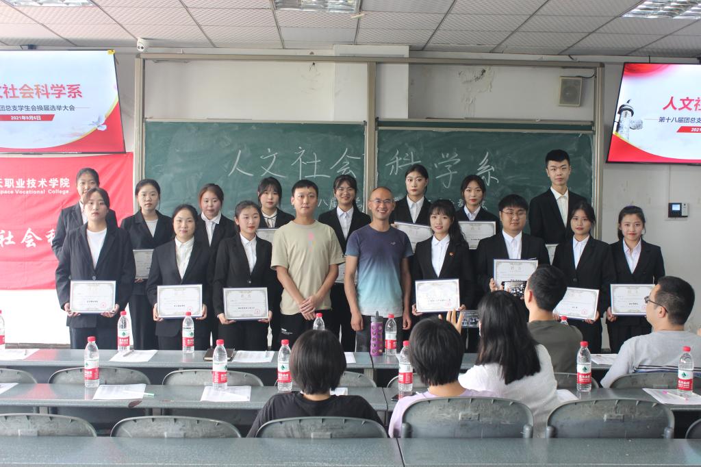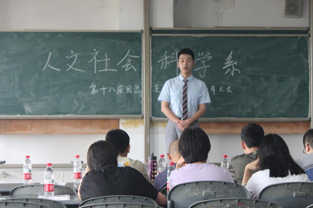 第二项议程由人文社会科学系副唐小强书记,学管干事武佐文老师为上一届团学干部颁发证书。
