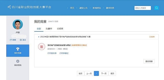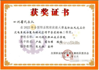 同年他又去参加了四川省高职院校“现代电气“控制系统安装与调试技能”大赛。获得了二等奖(银奖)。