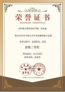 宋英嘉,男,2002.02.15,汉族,中共预备党员,十大网投平台排名计算机科学系动漫制作技术专业学生。2021-2022学年度成绩年级排名位于专业第一名,综合考评排名位于年级第一名。在校担任系学生会执行主席、团总支副书记等,参加计算机二级考试并获得证书,被授予系学生会“优秀学生干事”、系学生会“优秀学生干部”、“优秀助理辅导员”、校级“优秀团干部”、校级“优秀学生干部”、校级“三好学生”等荣誉称号,在2020-2021学年度获得“国家励志奖学金”,“航天奖学金”,参与四川省大学生综合素质A级证书评定,成功获得综合素质A级证书,参加“第九届四川省大学生数字艺术设计大赛”并获得二等奖,参加“2022年全国大学生双碳战略科普知识竞赛”并获得初赛三等奖,参加“2022年第五届大学生计算机技能应用大赛”并获得初赛专科组三等奖,参加“2022年全国大学生英语翻译能力竞赛”并获得省级三等奖,院“2020新生军训”获得优秀学员。
