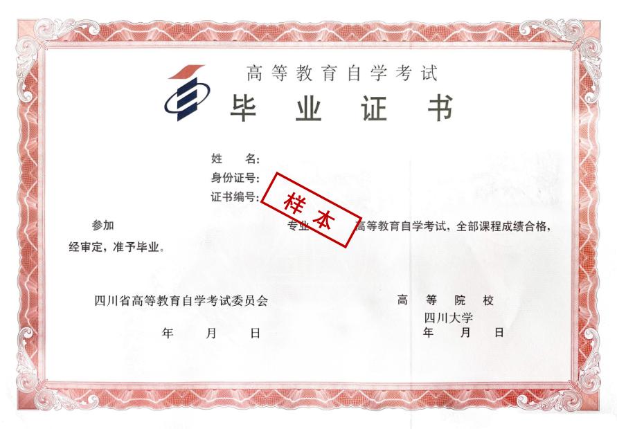 高等教育自学考试是对自学者进行以学历考试为主的高等教育国家考试,是个人自学、社会助学和国家考试相结合的高等教育形式,国家承认其学历,在中国高等教育学生信息网上可查实。学员所获得的毕业证书由四川省高等教育自学考试委员会颁发,四川大学作为主考院校副署校印,本科毕业生符合学士学位条件的,可申请授予学士学位。