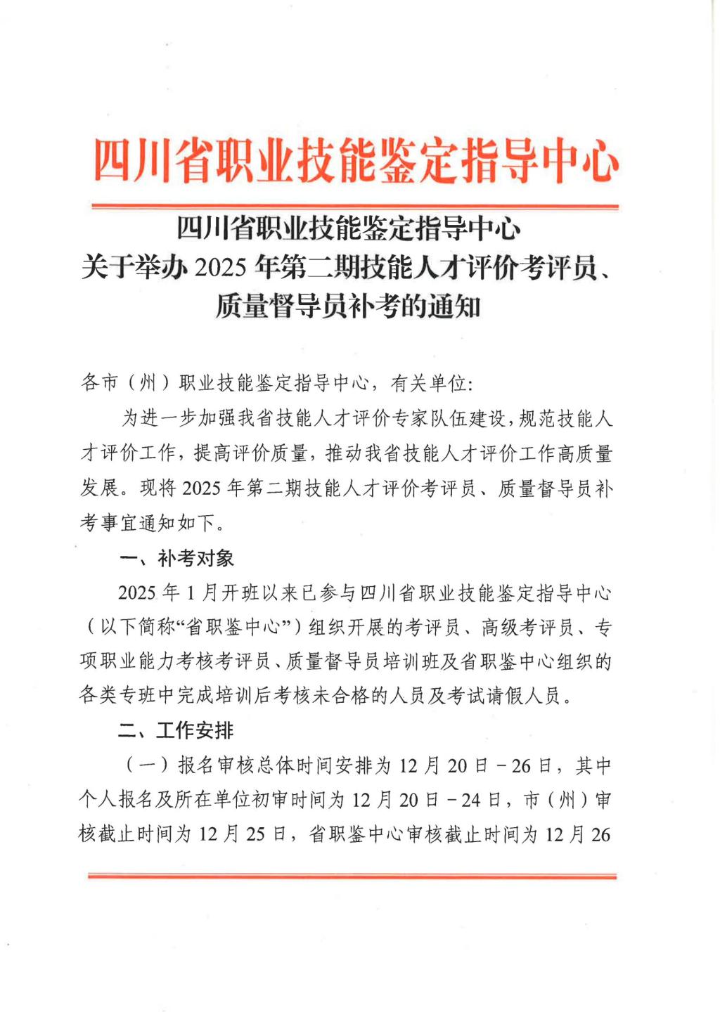 关于省中心举办2025年第二期技能人才评价考评员、质量督导员补考的通知