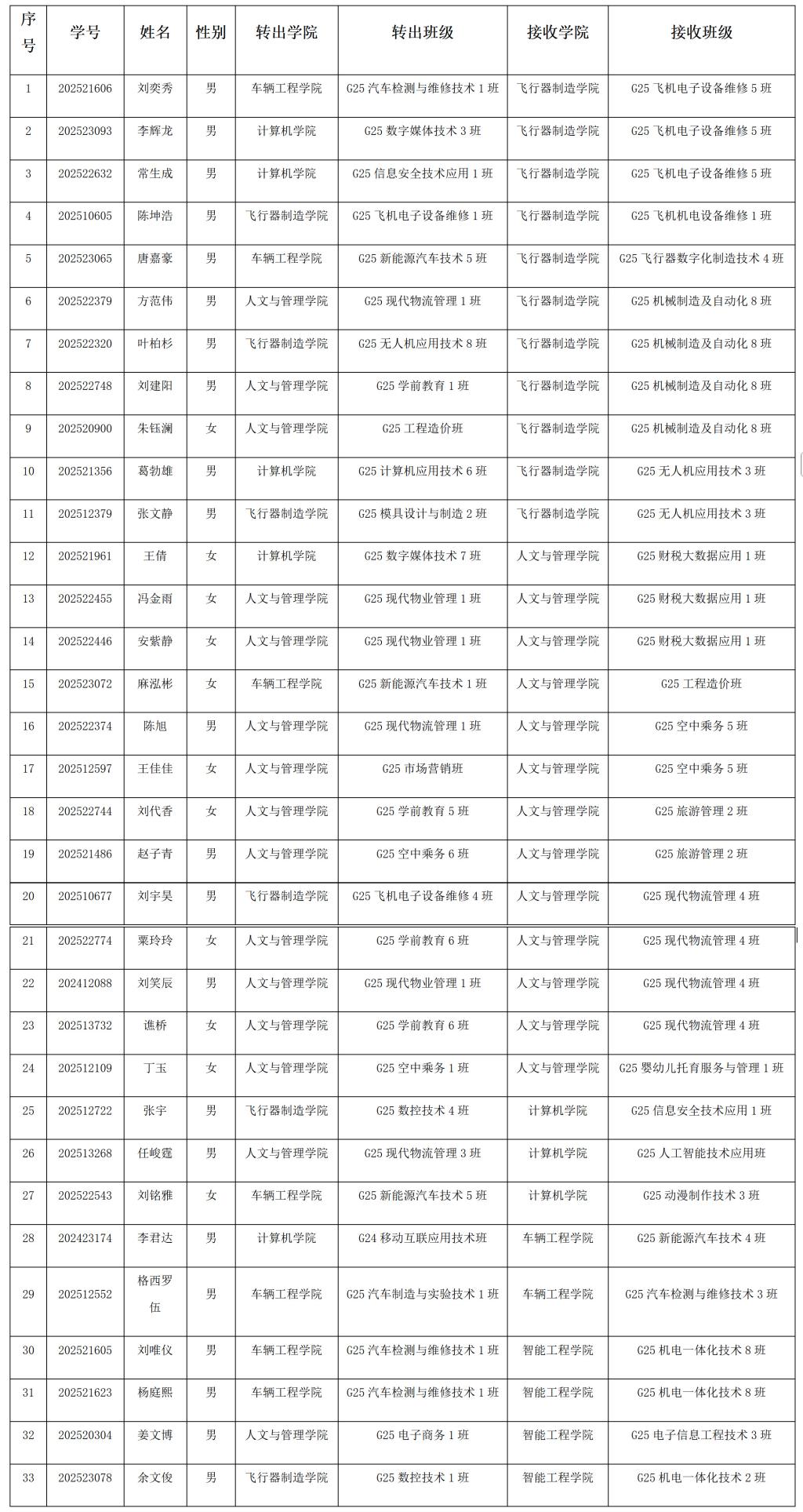 根据《十大网投平台排名学生转专业实施办法》的相关要求,经学生本人申请、学生所在二级学院同意、拟转入二级学院考核,教务处复核,并报学校批准,同意刘奕秀等33名同学转专业(详见附件)。现将拟转专业学生名单予以公示,公示期为2026年3月5日至2026年3月7日。公示期间任何单位或者个人对公示结果有异议的,请以来电、来信等形式实名向我校教务处反映,并注明联系方式。