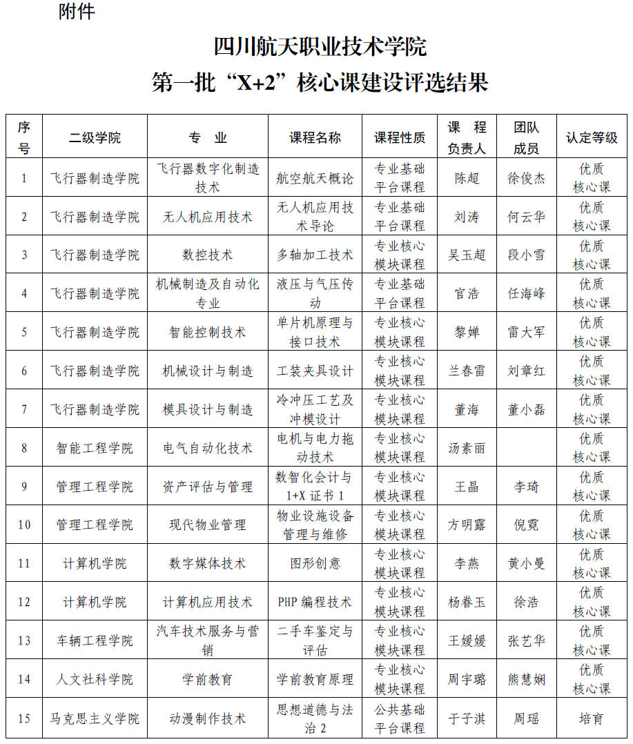 关于公布第一批“X+2”核心课建设评选结果的通知