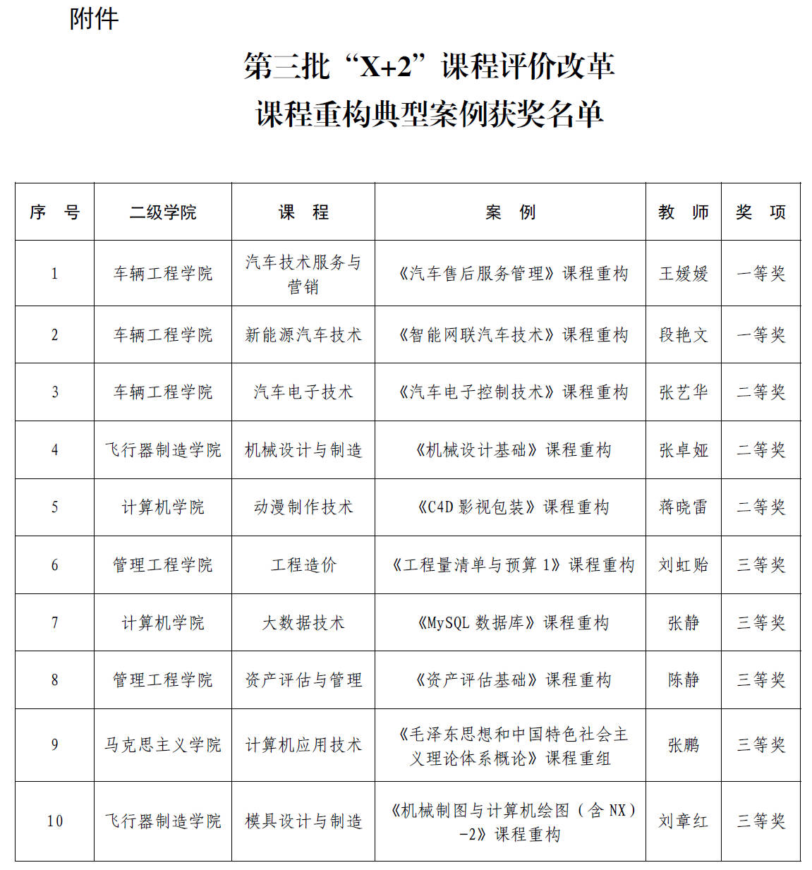附件:第三批“X+2”课程评价改革课程重构典型案例获奖名单